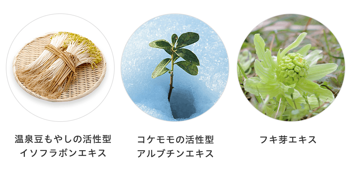秋田県花である蕗のエキス。外的ストレスから肌を守り、明るさと透明感のある印象へ。