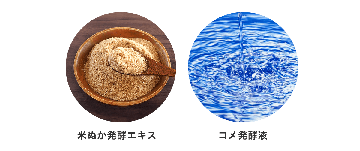 ・米ぬか発酵エキス:大正から続く秋田の酒蔵の米ぬかを乳酸菌で発酵させたエキス。