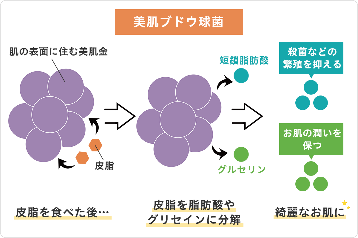 皮膚に存在する常在菌(※表皮ブドウ球菌)の水分を生み出す働きを促し、肌そのものに潤いをつくり出してもらう処方を設計しました。